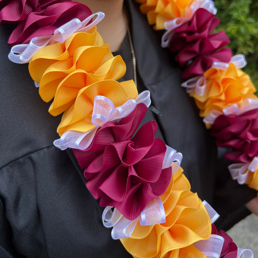 WCHS Graduation Lei | Sewn Sheer Organza Satin Petals Ribbon Lei